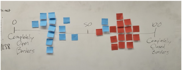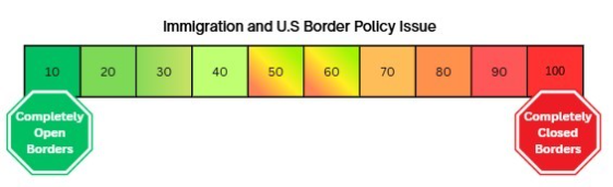 Imagine the controversial issue of Immigration and U.S. Borders has been placed on a 100-point scale, where 1 represents the belief that borders should be completely open to everyone all the time and 100 represents the belief that the borders should be completely closed to anyone at all times. Now take a moment to reflect on the following questions: